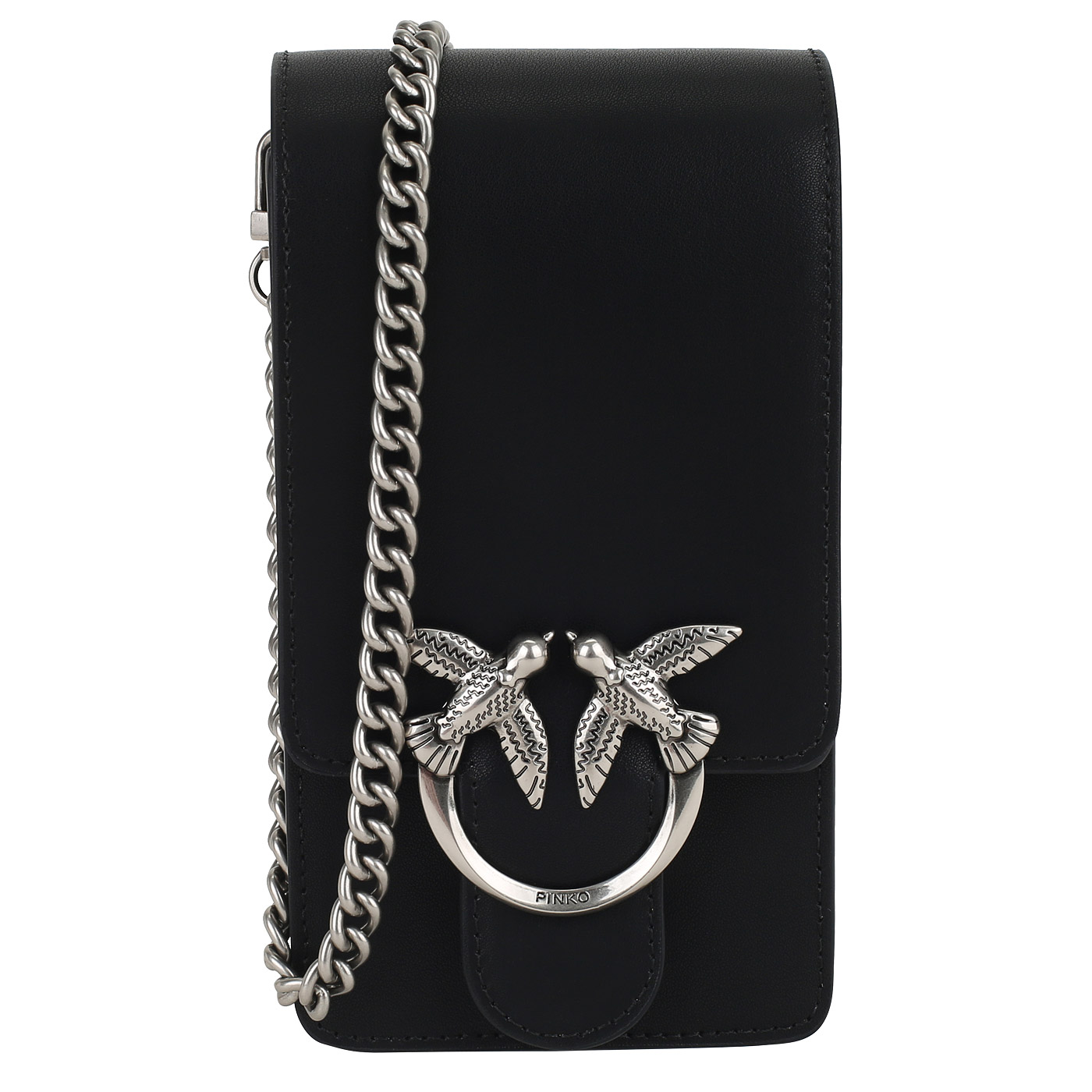 Сумка для смартфона с цепочкой Pinko Love One 102739-A0F1/Z99O_black - 2000558543910 черный натуральная кожа 10 x 18 x 6 Цена 26880 руб. купить в интернет-магазине PanChemodan.ru в Грозном