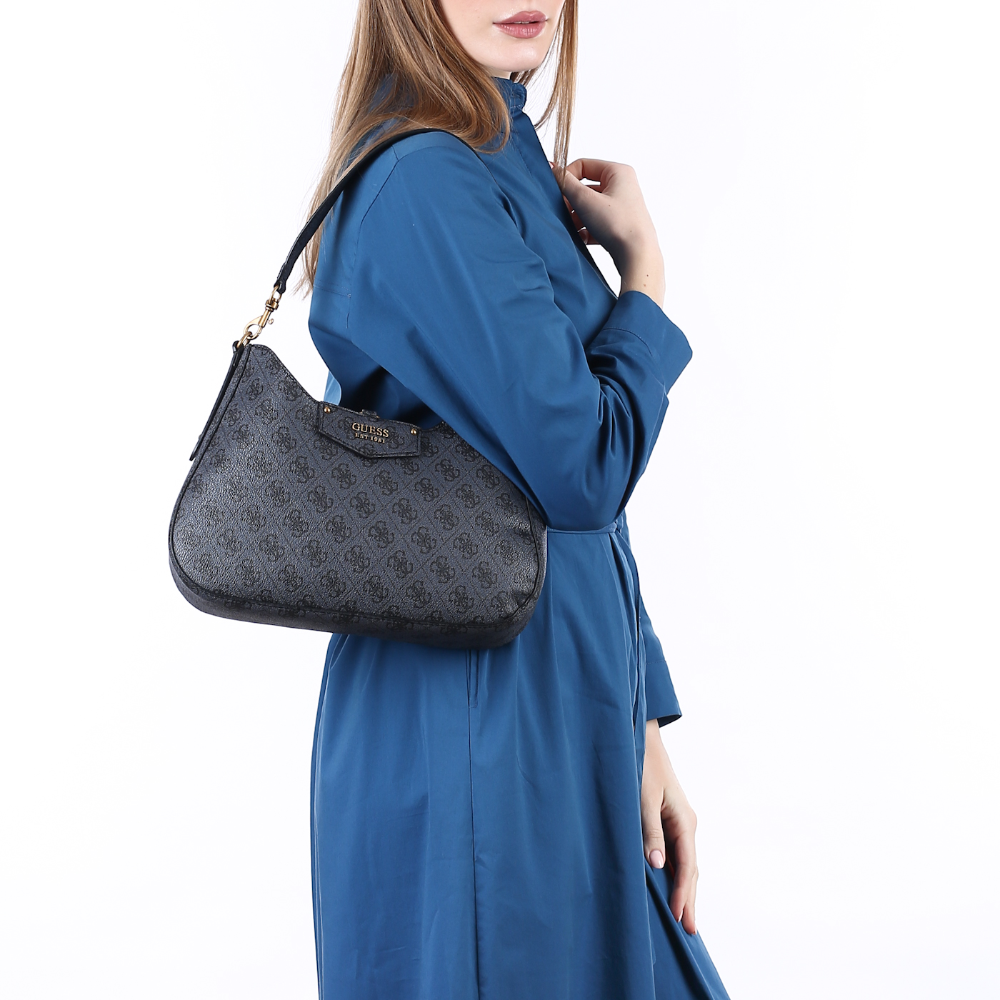 Сумка со съемным отделением Guess Eco Brenton HWESB8 39002_coal logo_pc - 2000558420259 серый полиуретан 31 x 17,5 x 8 Цена 10650 руб. купить в интернет-магазине PanChemodan.ru в Грозном